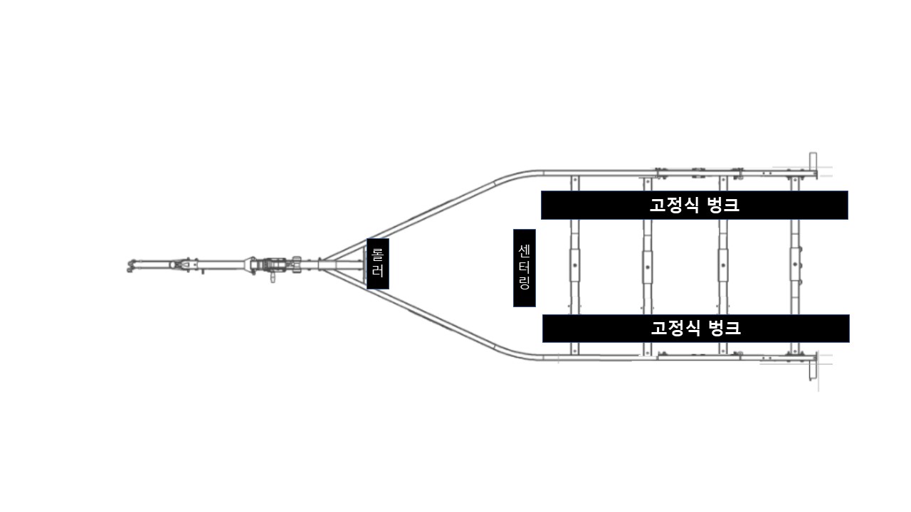 유동식 벙크가 2개 있는 구조입니다. 대개 6미터 미만의 국산 트레일러는 거의 위 모양을 하고 있습니다.