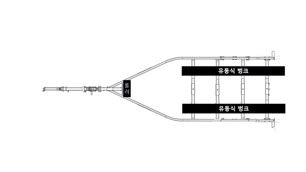 유동식 벙크 2조로 이루어진 구조로 사이즈가 커지는 경우 전후 무게배분 및 센터링을 위해