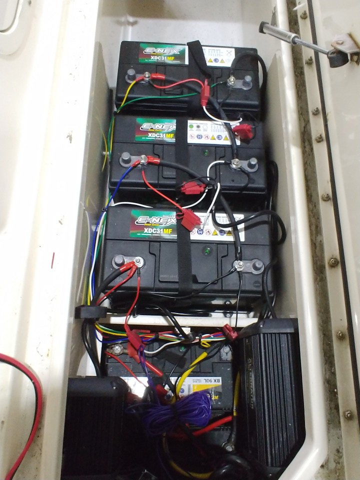 이 배는 가운데 통로 아래쪽에 수납공간이 있었습니다. 여기로 트롤링모터에 전원에 대한 모든걸