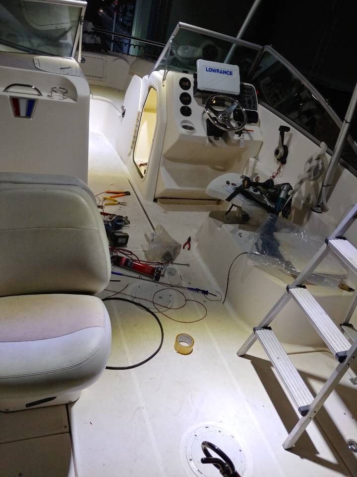 원래는 비미니탑을 장비하고 뒤에 스키를 끌 수 있는 지지대가 있었는데 야간에 낚시를 하시려면 이런저런