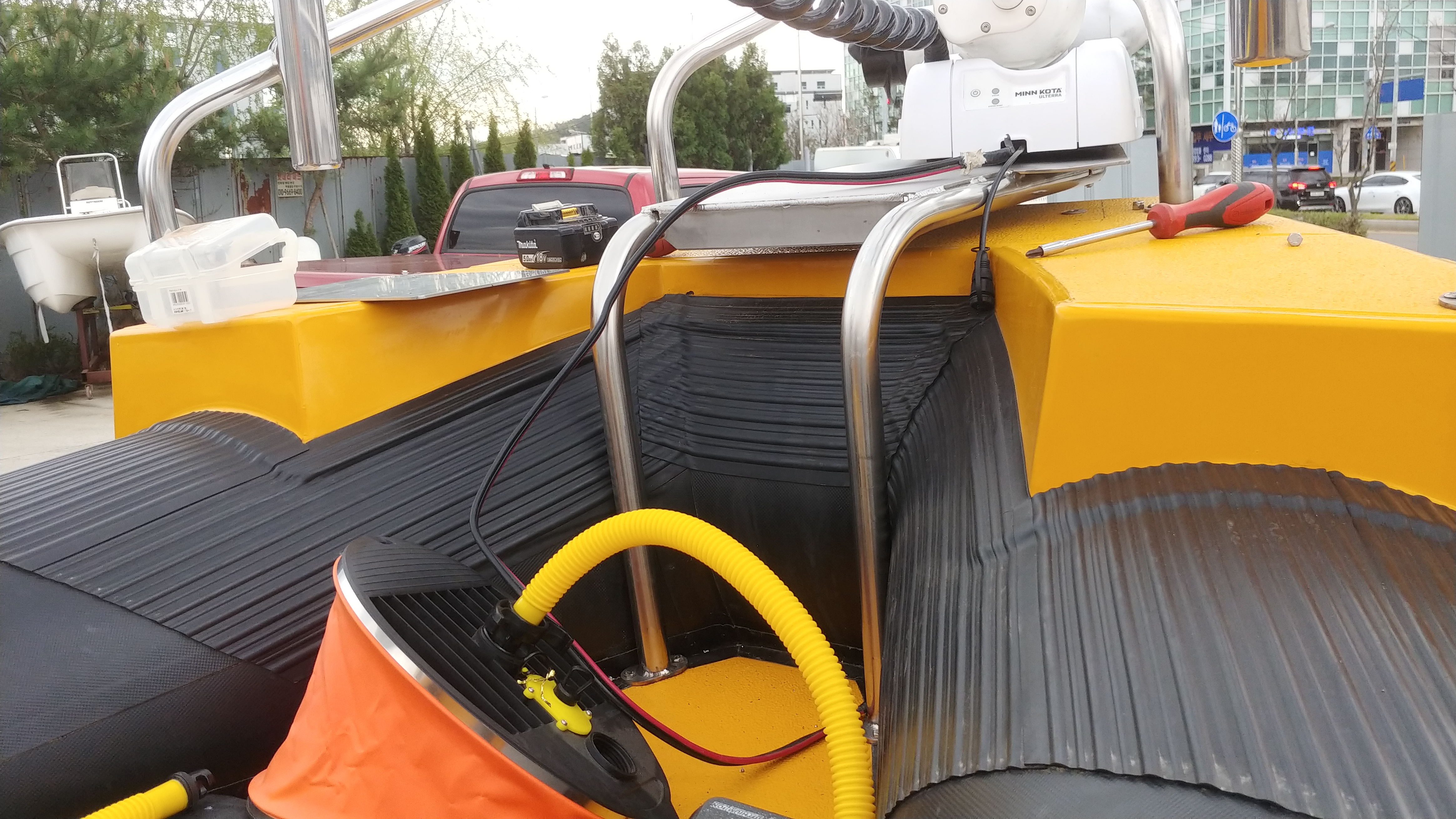 일부 보트들은 선수에 FRP로 발판이 설치되어있지만 결국 말랑한 튜브가 바닥이 되기 때문에 그대로 부착할 수가