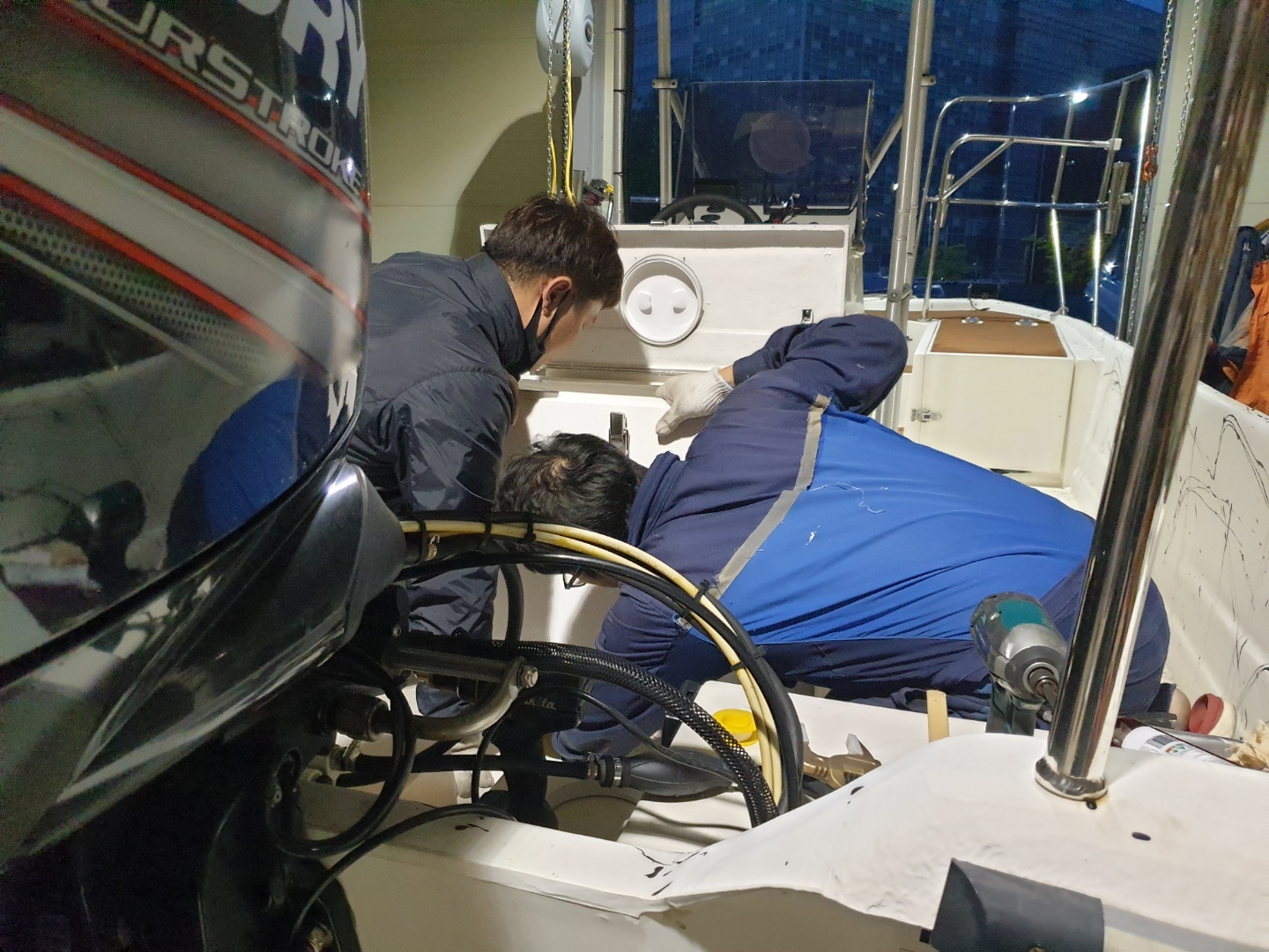 입출수구는 선주의 결정에 따라 좀 심플하게 구성했습니다. 멈워서 펌프로 끌어오고 배수는 가운데로 나가게 됩니다.