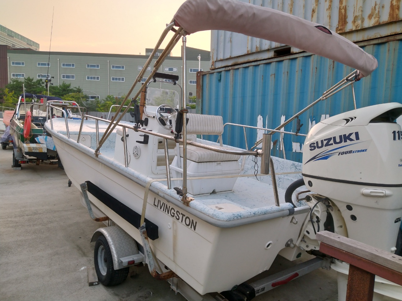 엔진은 스즈끼 115입니다. 연식은 배와 같고 사용시간은 600시간대 입니다. 낚시중 엔진을 켜놓고 쓴 적이 많고