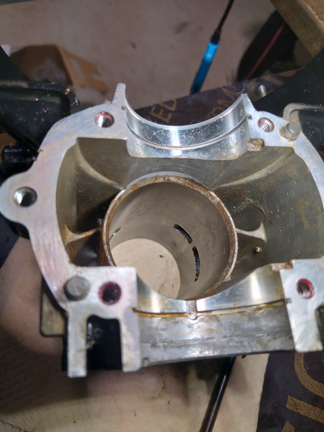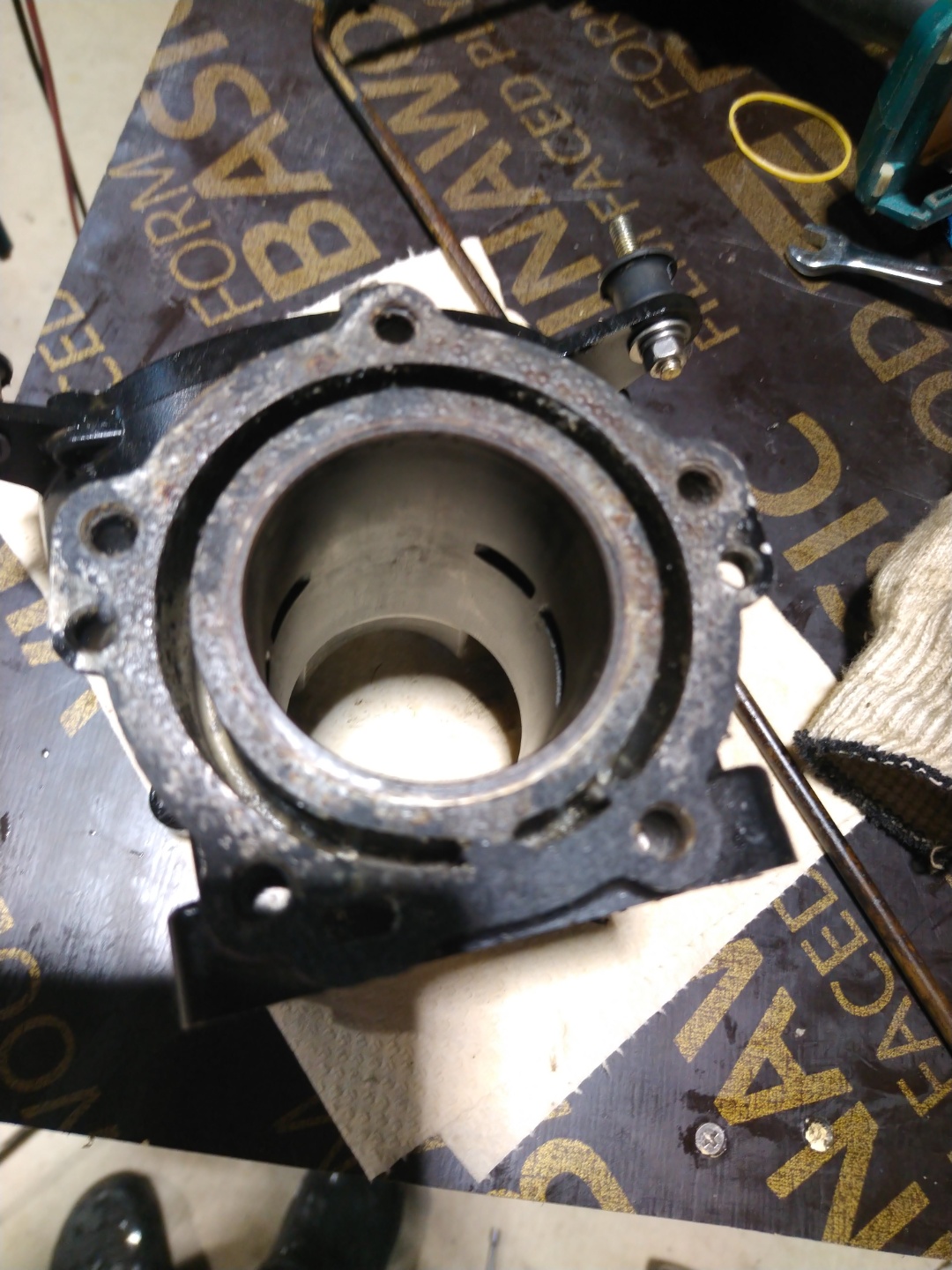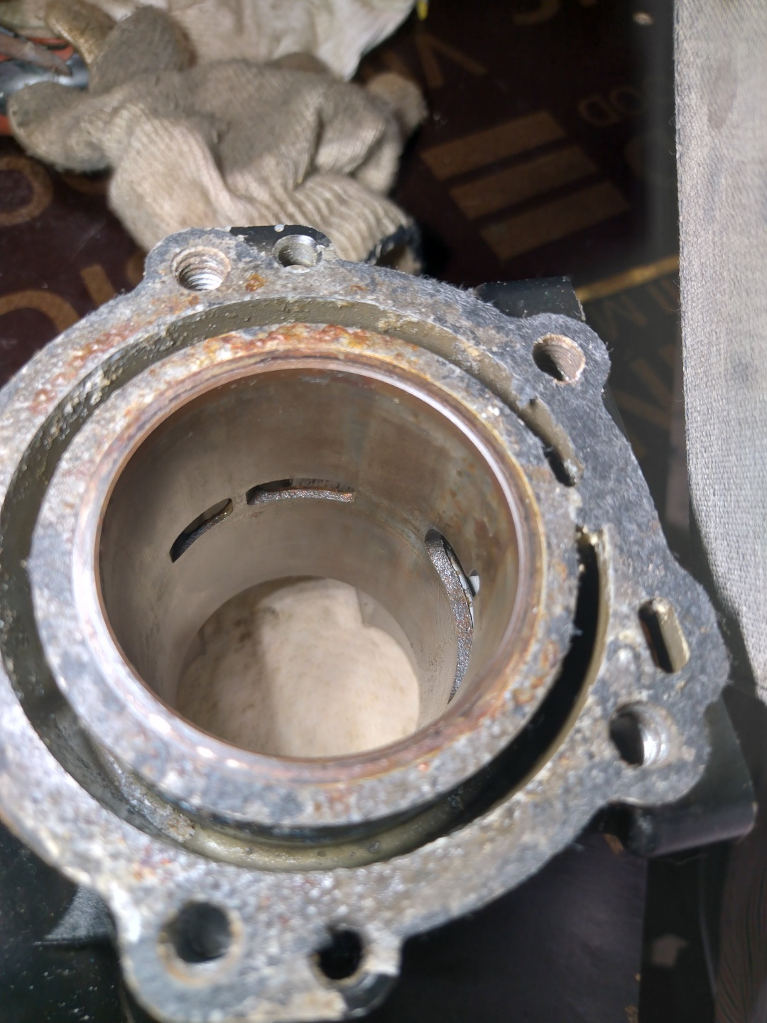 연료에 수분이 섞여들어간 채로 방치되어 크랭크 부식으로 못쓰게 된 것으로 실린더 안쪽에 약간의 녹얼룩이 비치지만