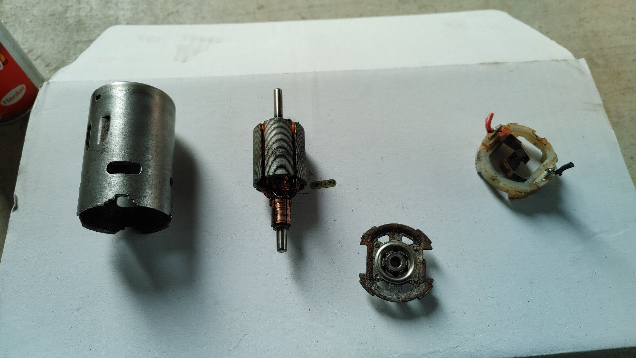 분해한 결과물이구요. 다른 모터를 분리하는 것 대비 나올 때는 오히려 수월합니다. 브러쉬 플레이트와 뒷 뚜껑이