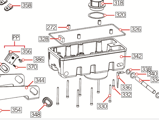 도면상의 330번 8개 볼트가 그 주인공입니다.