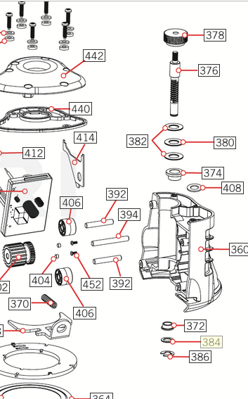 그림으로만 보면 요게 빠지는걸로 되어있지만 376 샤프트 하단에 링이 압착되어있어 386번의 E링을 빼도