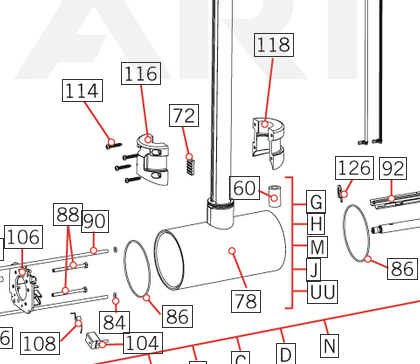 그리고 길이가 좀더 긴데 이 부분이 힘있게 조여줘야 하기 때문에 밀려서 들어가는 맞은편 부품( 도면의 118번 )