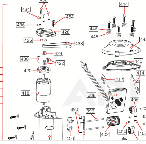 도면상 418번입니다. 이 모터는 사실 그리 특별한 모터가 아니지만 부품으로 나오지 않기 때문에