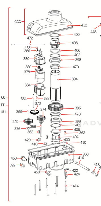 전개도를 보시면 알겠지만 물이 들어가는 것을 막아주는 부분은 위아래 샤프트가 통과되는 튜브 (394) 와