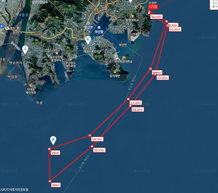 보통 수영만에서 런칭해서 영도를 돌아 형제섬 혹은 나무섬까지 돌아나오는 코스인데요.