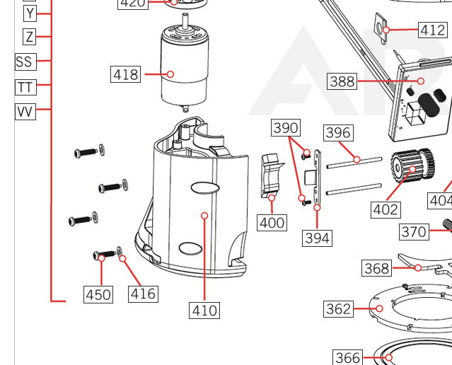 받고 있는 경우가 많음. 가끔 생각날 때 마다 324번을 분리하고 틸트모터와 브라켓을 빼서 유격조정이 필요함