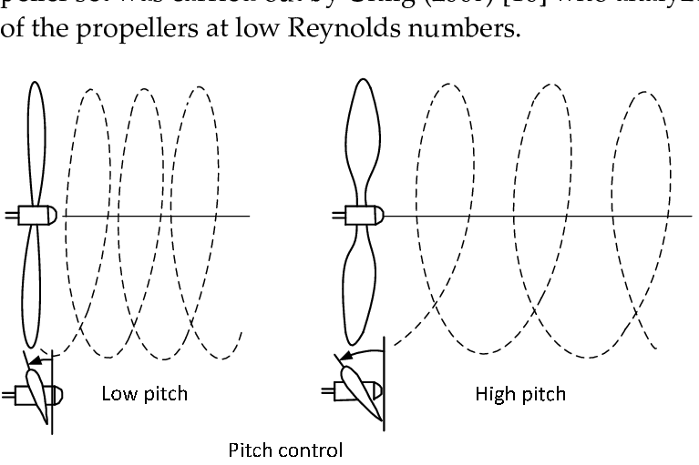 위 그림과 같이 같은 회전수라면 큰 피치 프로펠러가 1회전시 가는 거리가 많고 즉 속도를 더 빠르다 라고 생각할 수 있다.