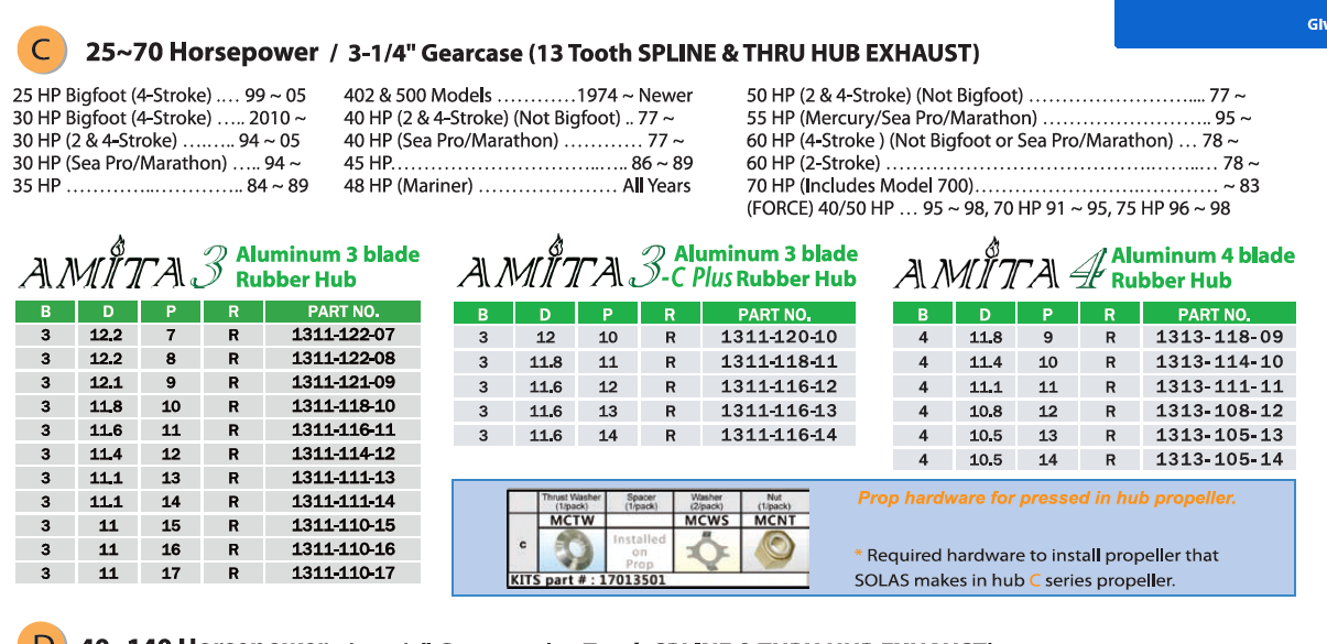 저 표에서 언급된 C 그룹은 25 ~ 75마력인데.. 25마력에 17피치를 끼우거나 75마력엔진에 7피치를 끼우는